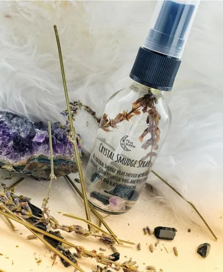 Introducing our Crystal Infused Smudge Spray, a smokeless way to cleanse your space and bring in positive energy, cleanse your space and elevate your energy.