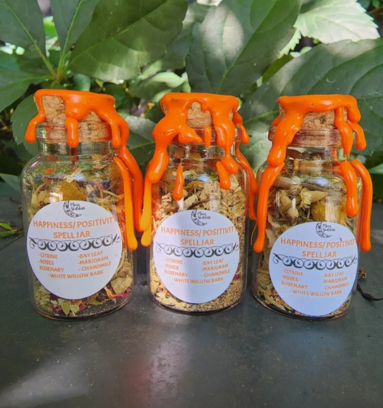 Introducing our Happiness Positivity Spell Jar, crafted with love and intention to help you manifest joy, happiness, and positive energy in your life! This Spell Jar is set with the intentions to help heal your soul and open new doors of happiness & Positivity in your life. It helps uplift your mood and heal any emotional & spiritual wounds you may have.