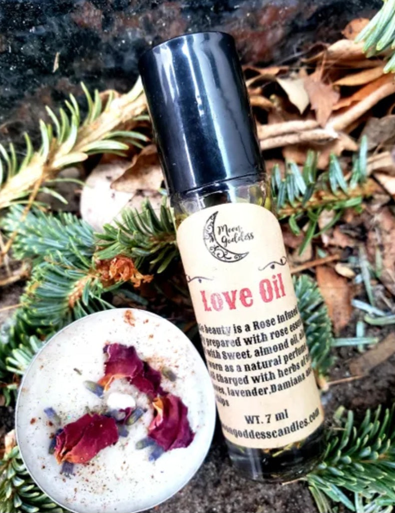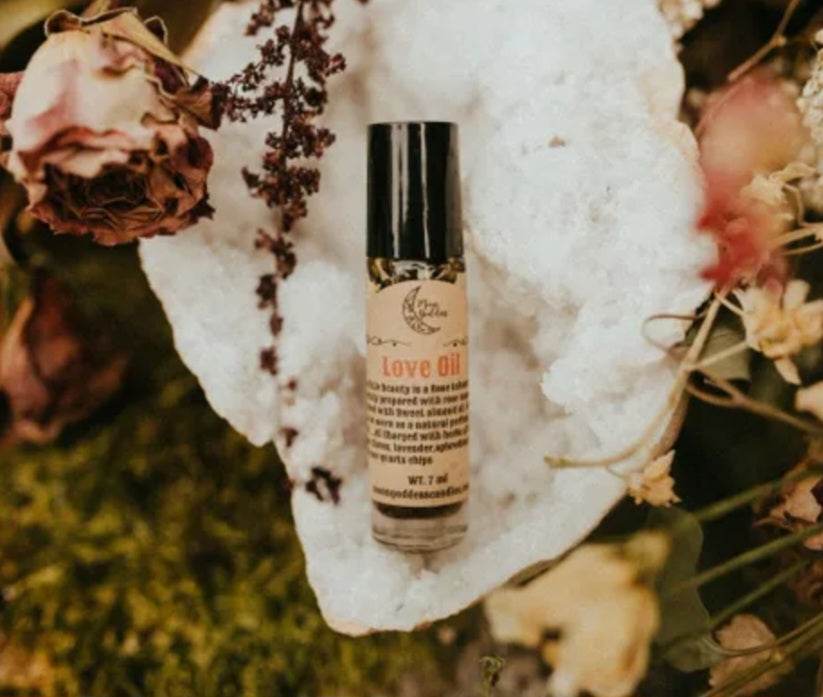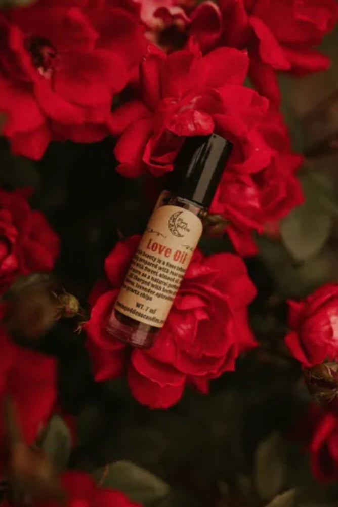 Introducing our Love Oil, a luxurious and sensual blend of natural ingredients that will enhance your intimacy and leave you feeling blissful and relaxed. Scented in roses and infused with the enchanting herbs of roses, lavender, Damiana, cloves, and rose quartz, this exquisite oil is designed to awaken your senses and enhance your connection with your partner.