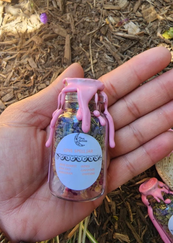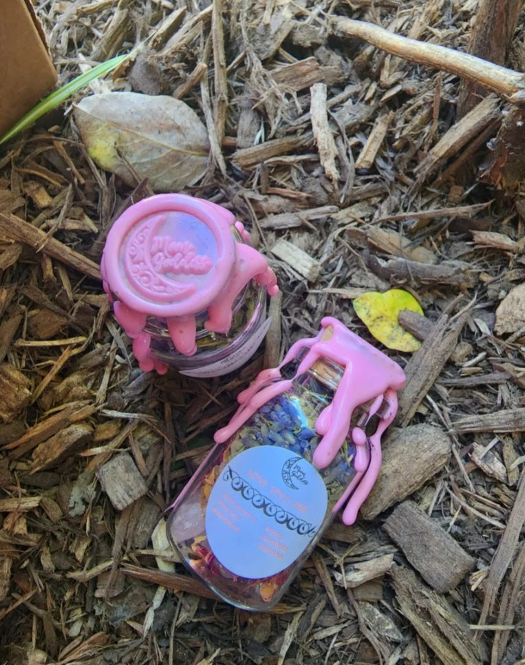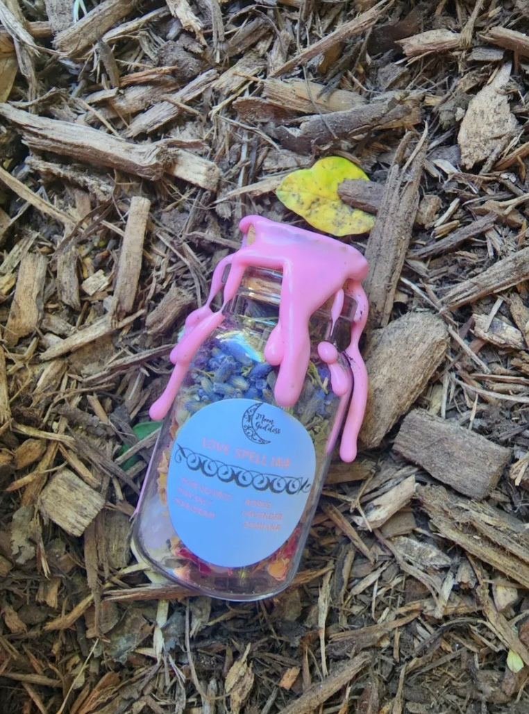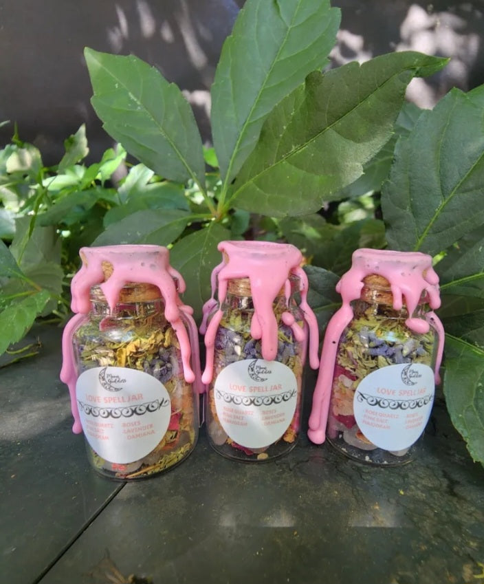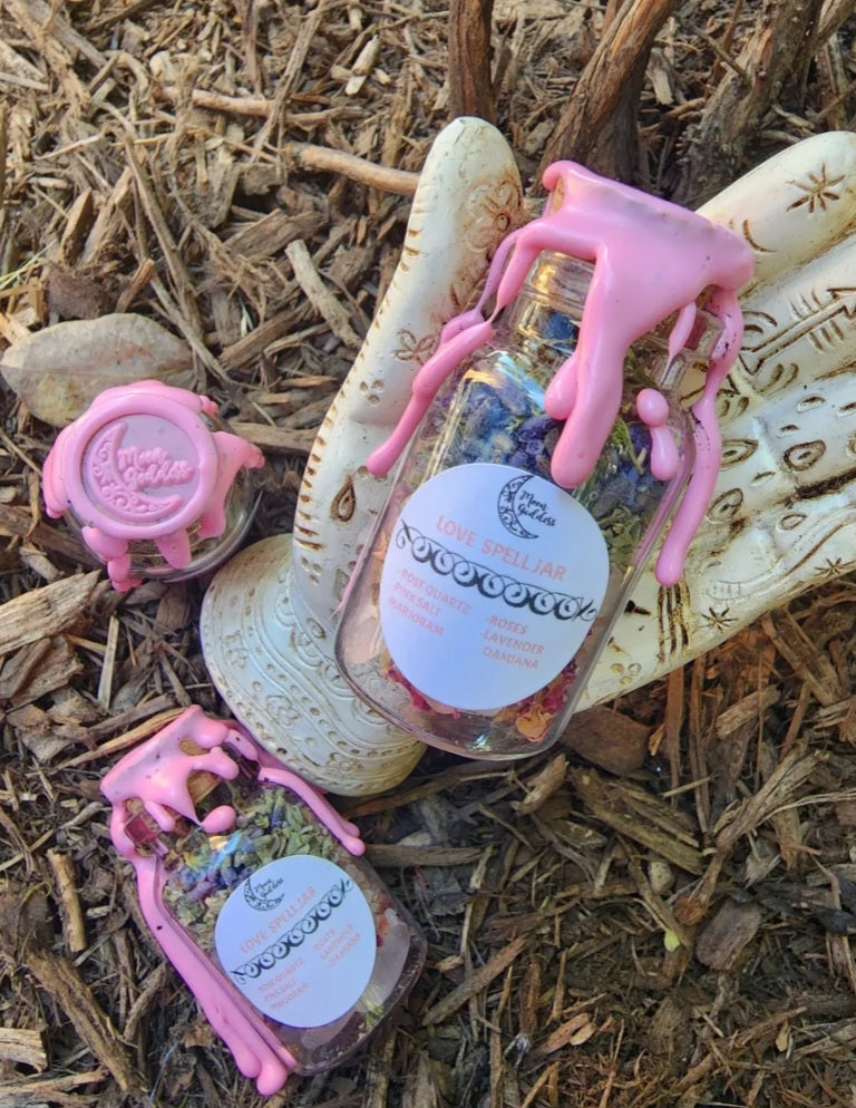 Introducing our Love Spell Jar, a powerful and enchanting tool designed to help manifest love, happiness, wisdom in relationships, and emotional balance. It is best used to amplify and help repair existing relationships or friendships, and is especially powerful as a love charm in the home to amplify happiness and optimism.