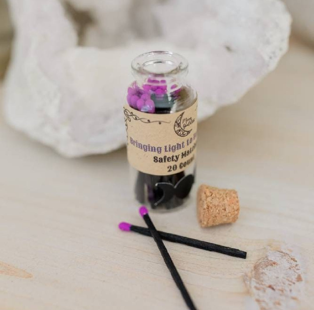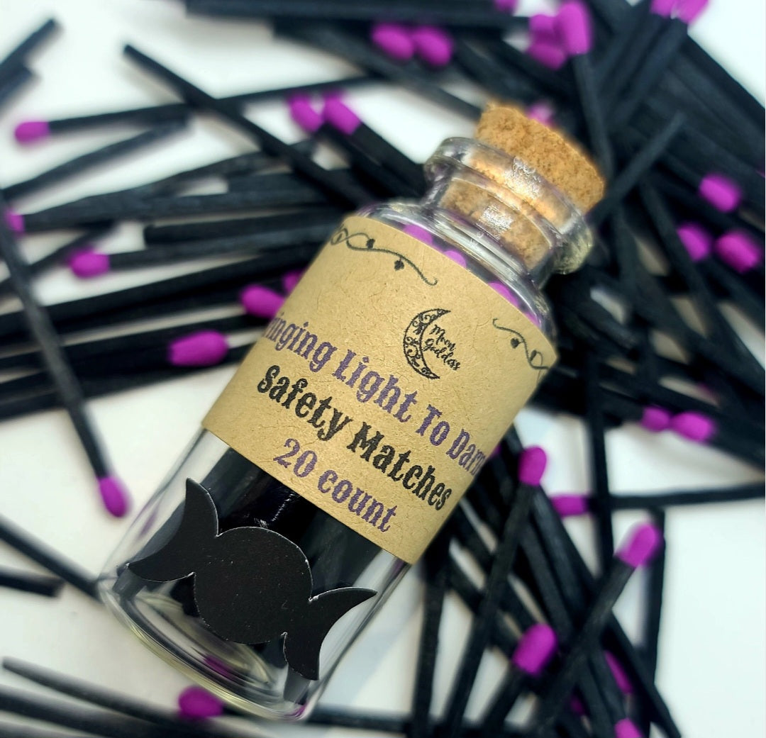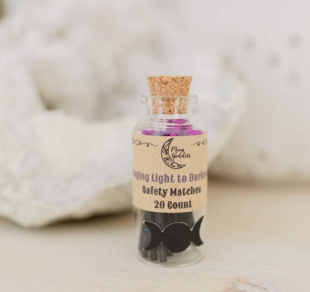 Illuminate your rituals and everyday moments with our elegantly crafted Purple and Black Matches, featuring a stunning triple moon striker. Designed for those who embrace the mystical and the celestial, these matches are perfect for lighting candles, enhancing your sacred space, or simply adding a touch of enchantment to your home.
