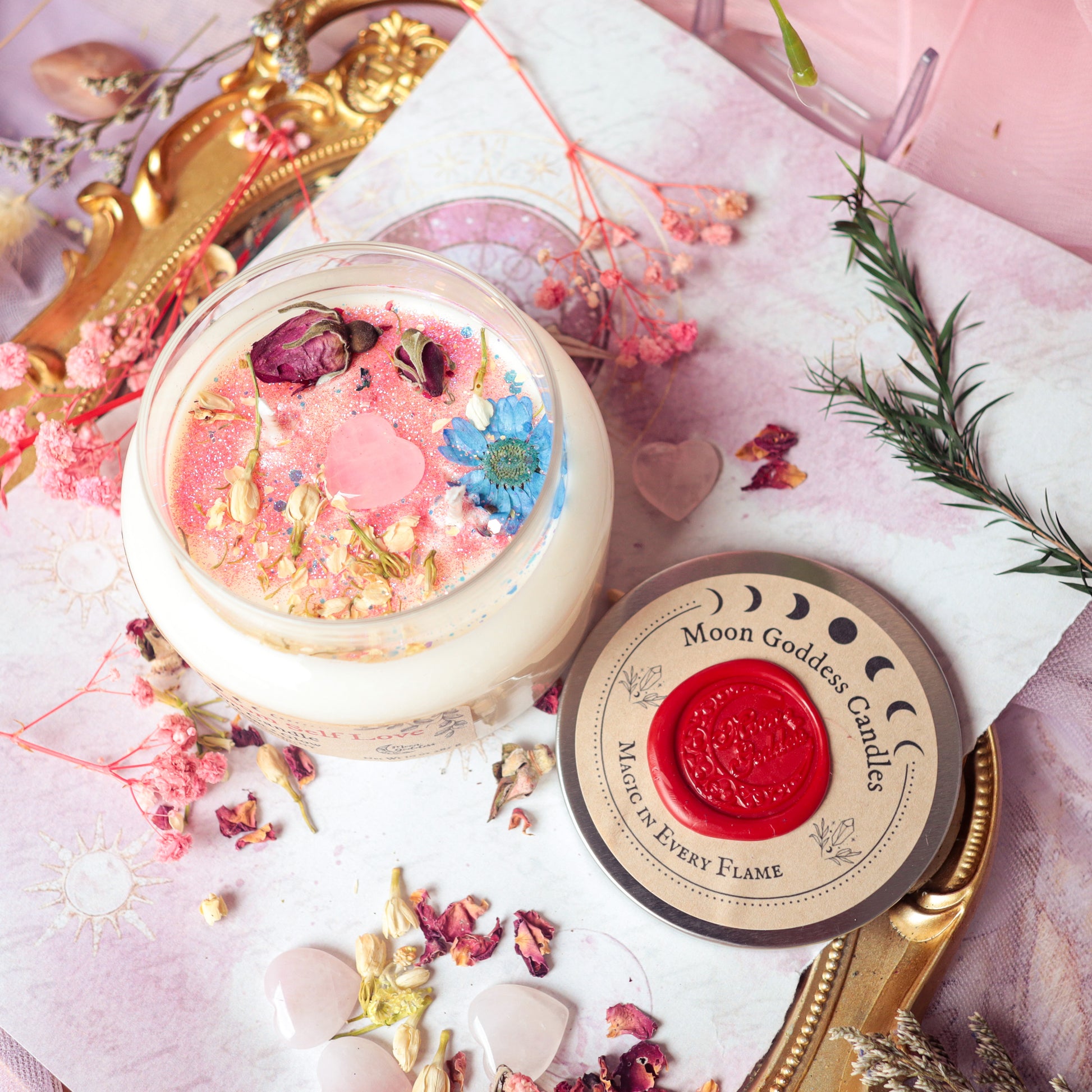This candle is designed to help you raise your heart's vibrational frequency and begin manifesting the self Love And Confidence you deserve. Use this candle to deepen your relationship with you. To help you learn to value, love and appreciate your own worth and beauty. Help yourself to see the immense value you truly hold and help you to build confidence and motivation to move forward in life. It is infused with the power of Roses and other magical ingredients that will help you radiate with Self Love and Confidence.