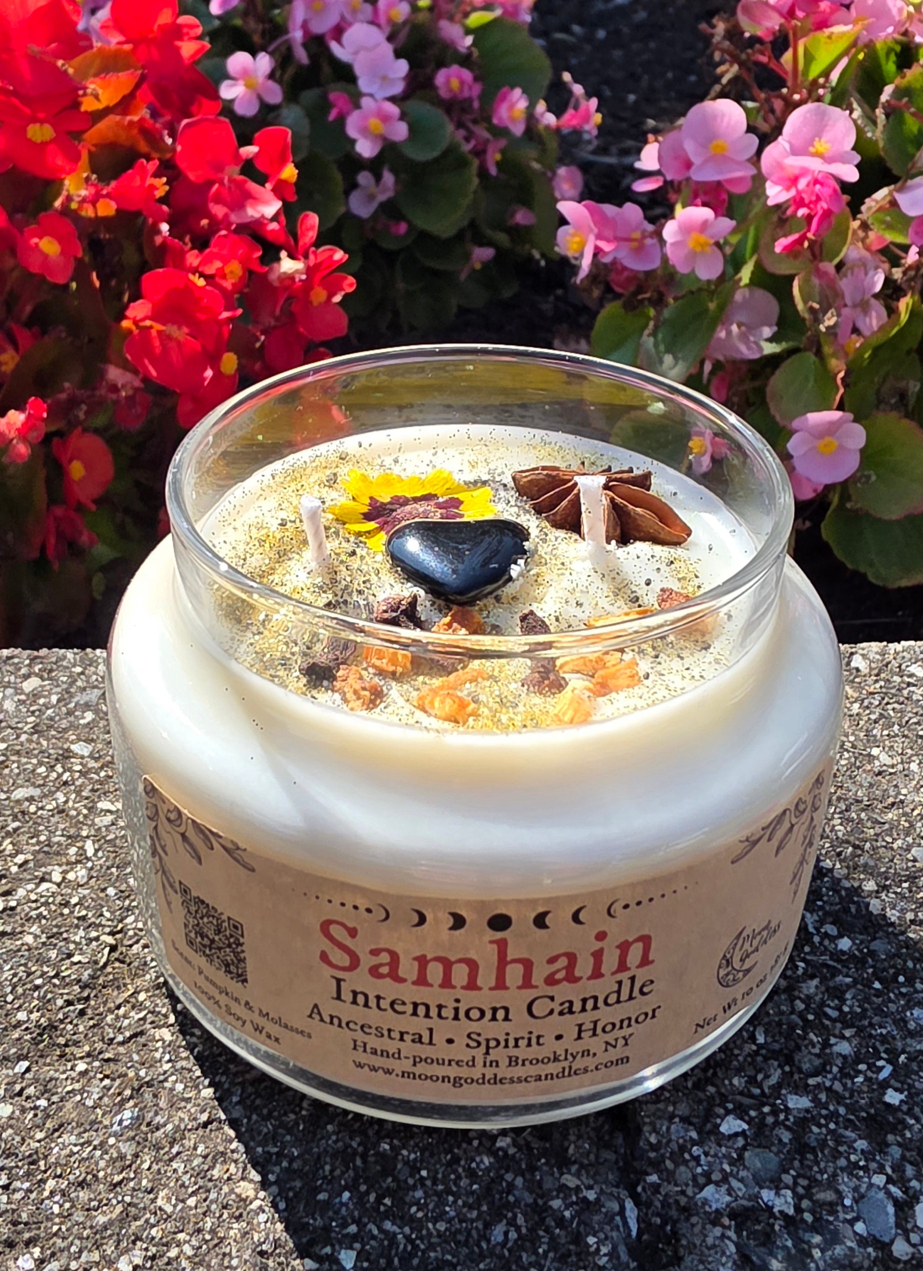 Step into the mystical energy of Samhain, the sacred time when the veil between worlds is at its thinnest. This handcrafted intention candle is designed to honor your ancestors, connect with guiding spirits, and create a space of deep reverence.