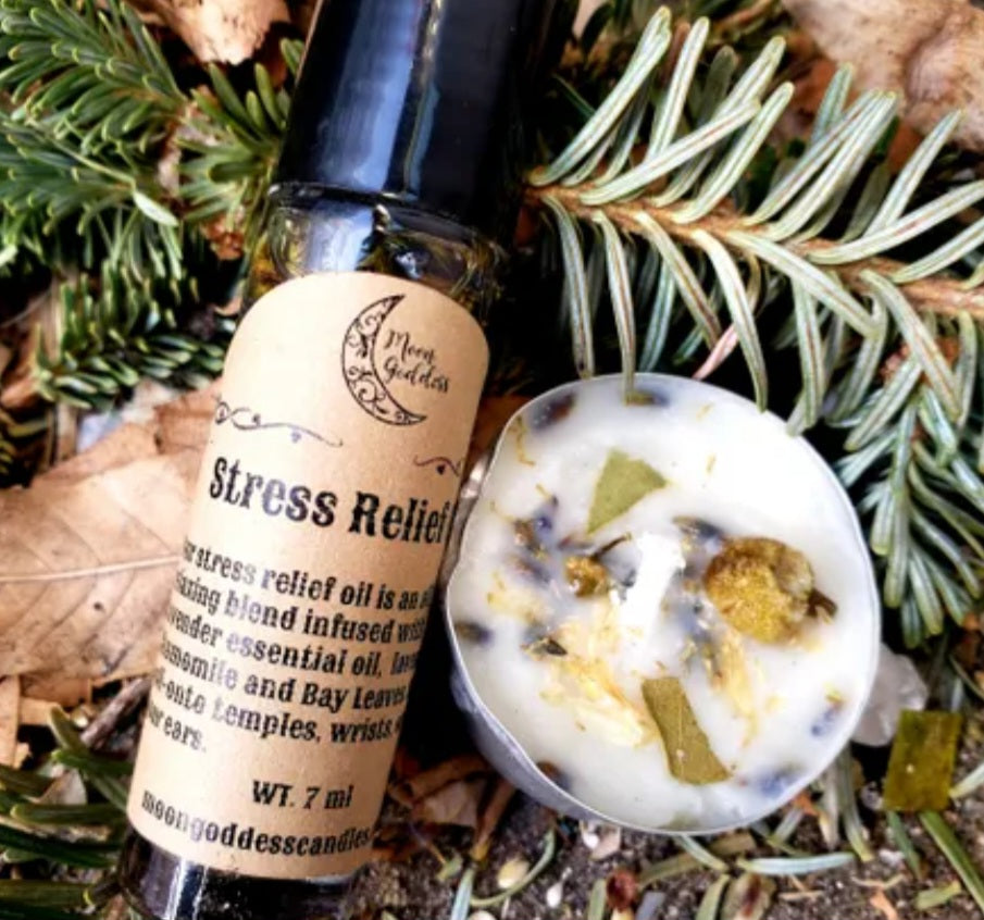 Introducing our stress relief oil, expertly crafted to provide a sense of calm and relaxation. Infused with the soothing scents of lavender and infused with, chamomile, and bay leaf, this oil is the perfect way to unwind after a long day.