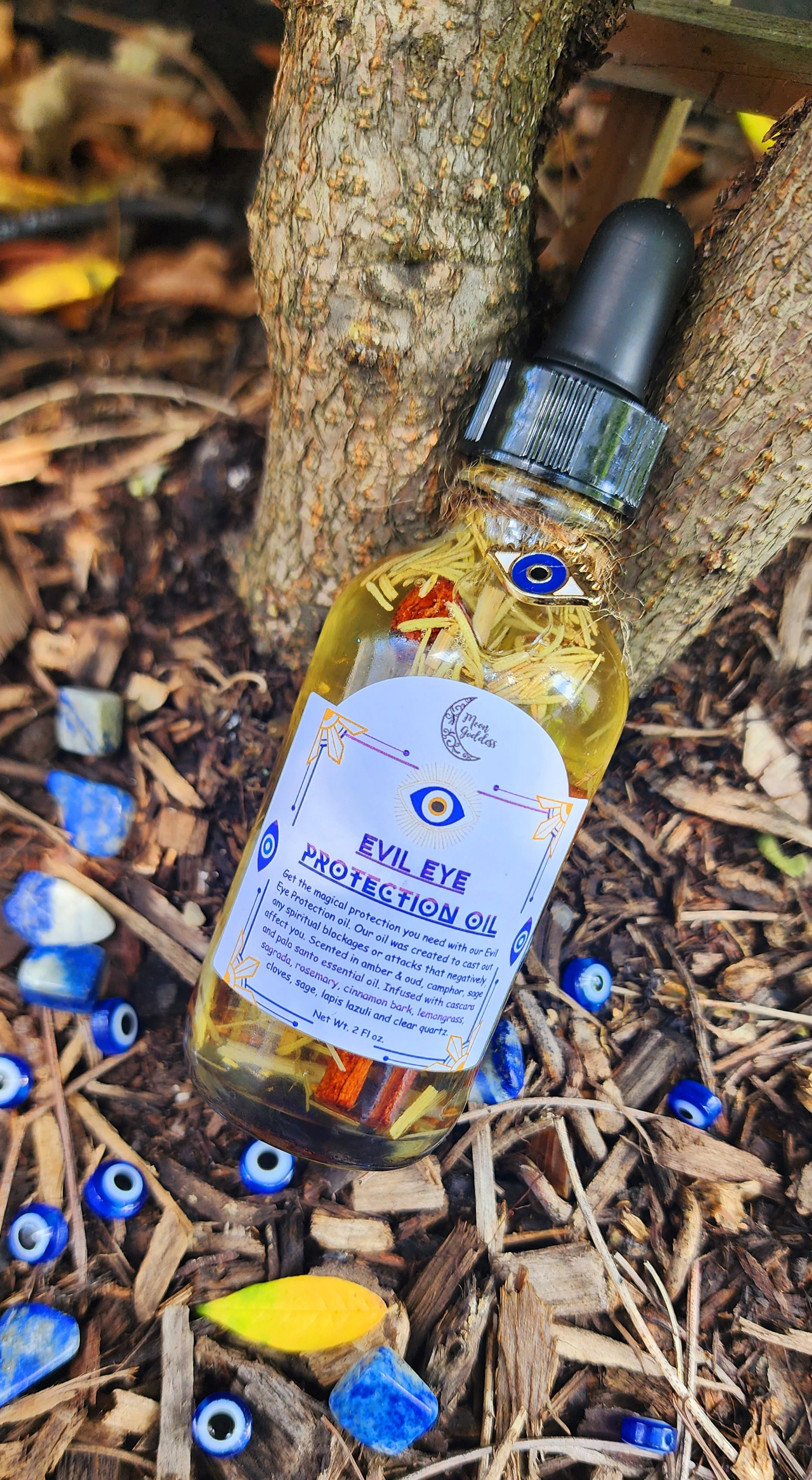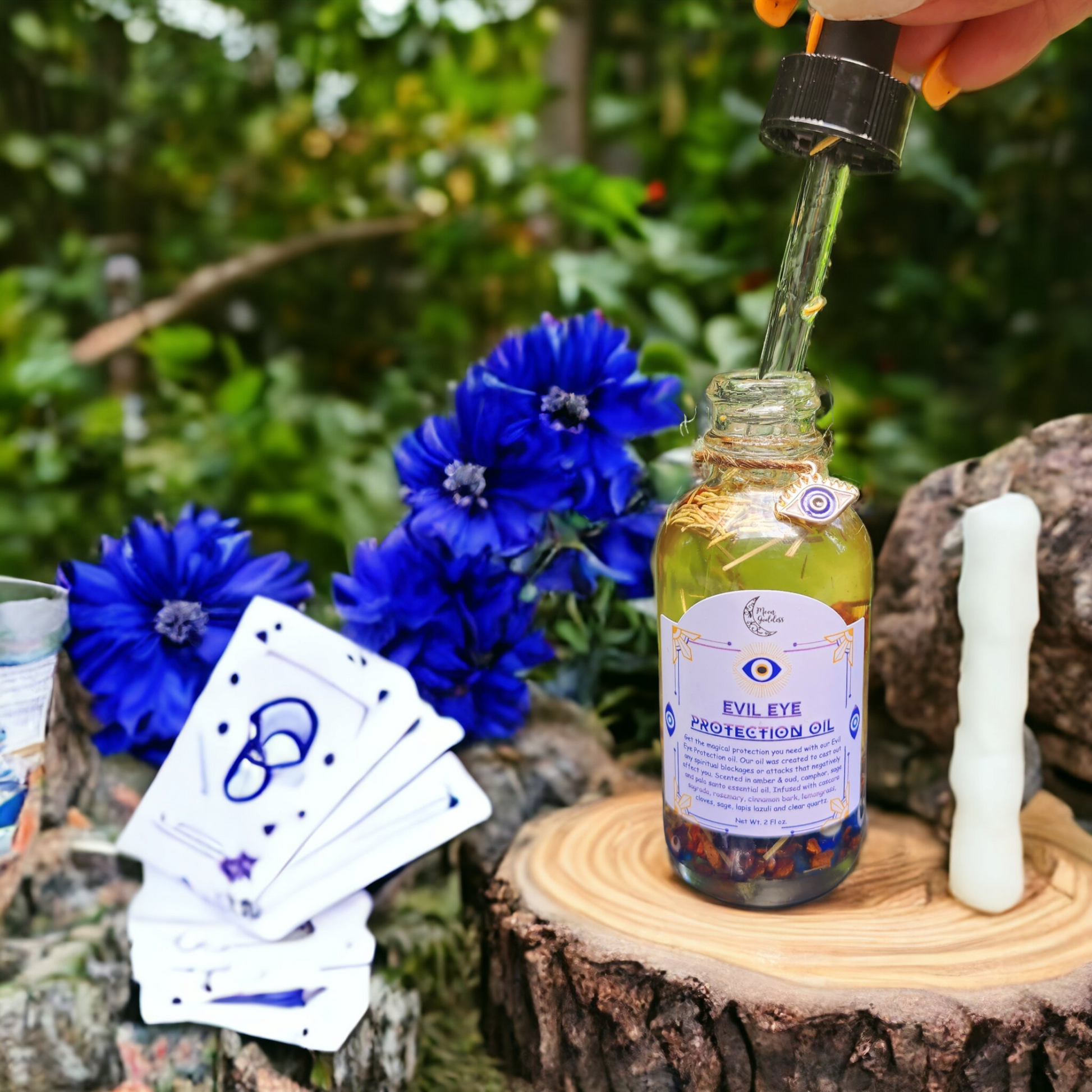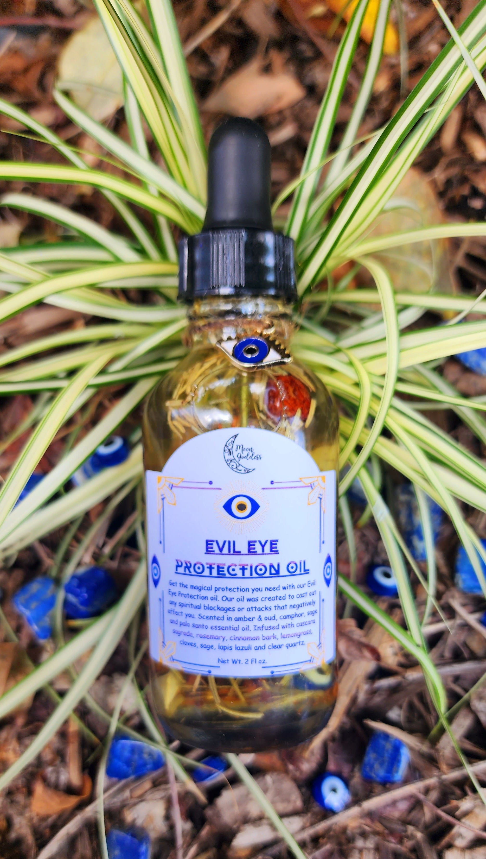 Introducing our potent Evil Eye Protection Oil, a harmonious blend of powerful natural ingredients and crystals to safeguard your energy and shield you from negativity.